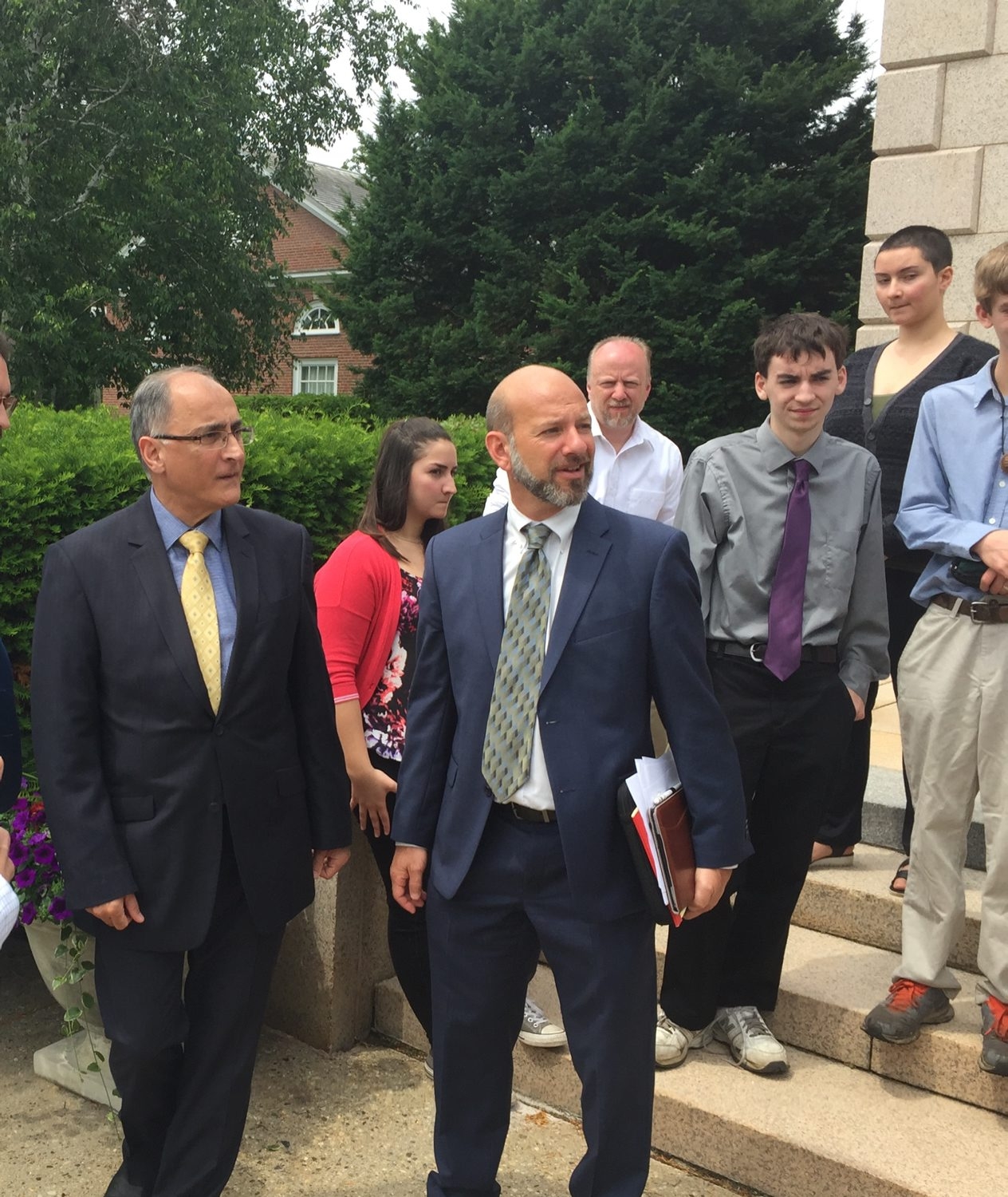 In late June, 2018, Ted Lothstein and the government's lawyer argued the case to all five justices of the New Hampshire Supreme Court. The Union Leader printed this article, and this picture of Ted Lothstein and his client and supporters outside the courthouse: